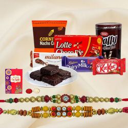 This gift box includes : � 1 Evil Eye Rakhi with Card � 2 Truffle [Cranberry, Dark Chocolate (12 Gms Each)] � Chocolate Brownie (80 Gms)