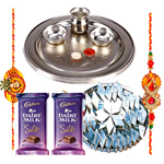 Silver Plated Rakhi Pooja Thali with Ganesh Laxmi Idol