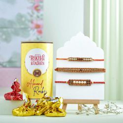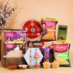 Make your Raksha Bandhan celebrations truly special with the Auspicious Rakhi Sweets Basket. It features a thoughtfully crafted Rakhi by Rakhi Sutra that symbolizes your bond. The delicately prepared Rasgulla brings a touch of sweetness, balanced perfectly with the luxurious satisfaction of our Sapphire Truffle Selection. Crispy Cashews and crunchy Almonds will leave your family wanting more! Enjoy the classic taste of Kaju Katli, and don�t forget the indulgent delight of the Cadbury Dairy Milk Silk Oreo Chocolate Bar paired with Cadbury Nutties. Every sweet in this basket tells a story of togetherness and joy. Plus, you�ll find complimentary Roli Tika N Chawal to honor your traditions and a message card to convey your love. All beautifully packed in a reusable basket, it�s a joy to both receive and give. Elevate your Raksha Bandhan with flavors, fun, and meaningful connections!