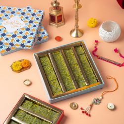 Elevate your Raksha Bandhan with our Eco-Delight Rakhi Gift Set! This enchanting collection features two plantable rakhis, each embedded with basil seeds ready to grow into lush plants. Nestled inside is a charming wooden planter and a range of thoughtful gifts, including a bamboo sound amplifier. Not only does this box celebrate tradition, but it also nurtures the environment, making it a perfect gift for your loved ones.