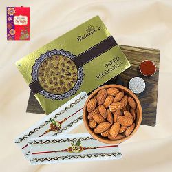 This gift box contains: � Chocolate Square Baklava � 2 Sets of Rakhi