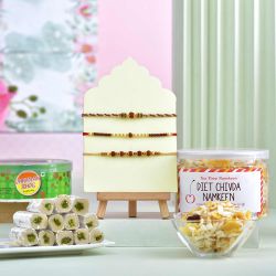 Experience a sweet journey with our Rich Chocolate Baklava N Rakhi Harmony adorned with beautiful Rakhis. Savor the pleasure of premium chocolate enveloped in layers of golden phyllo dough, crafted to perfection in a charming square shape. Every bite promises a hint of bliss, a perfect choice for those who crave a unique twist on a classic dessert. This package becomes even more special with two Rakhi sets, adding a personal touch of tradition and love. Its more than just a gift, its a celebration of taste and connection. Whether youre looking to send love across miles or hand-deliver a sweet surprise, our Chocolate Baklava with Rakhi set captures the essence of joy and tradition.