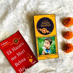 This gift consists of: � 1 Raksha Bandhan Chocolate Bar (35 g) � 1 Customized Photo Frame � 1 Teddy � Mix Fruit (50 g) � 1 Greeting card