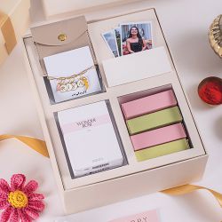 Delight your sister with this charming gift set crafted for Raksha Bandhan. Featuring a personalized photo frame, a delicious chocolate bar, and a cute teddy, its the perfect way to express your love. Plus, enjoy mixed fruits and a sweet greeting card to complete the celebration.