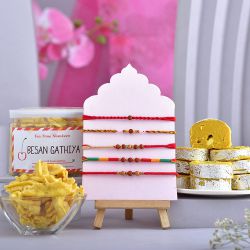 Celebrate the joy of togetherness with our Sweet Moments Rakhi Gift Set, where playful rakhis meet gourmet treats. From crunchy almonds to rich brownies, this collection is a delightful treat for your loved one.