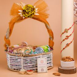 Celebrate the spirit of sibling love with our Charming Rakhi Nuts N Sweets Combo. Inside, you�ll find a luscious assortment of Baklava paired with Premium Dry Fruits, all nestled in a beautifully designed floral box. This thoughtful gift, complete with a Rakhi, beautifully captures the essence of Raksha Bandhan and is sure to warm hearts.