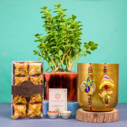 This is a gift of : � A Kundan Bhaiya Bhabi Rakhi Set (BBVL9527) � Complimentary Roli Tika N Chawal � Complimentary Message Card