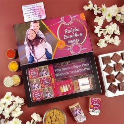 Celebrate the spirit of Raksha Bandhan with the Stylish Kids Batman Rakhi Gift, perfect for young fans! This exciting package includes a lively Batman Rakhi (KDSBAT4709) to thrill your little brother. It also comes with essential Roli, Tika, and Chawal for the rituals, plus a thoughtful message card to express your affection. Make this Raksha Bandhan truly special with this vibrant gift!