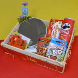 This gift consists of: � A Quirky Bro Rakhi (QUR8208) � Channa Barfi (336g) � Jhaal Chanachur (200g) � Sapphire Chocochip Cookies (150g) � Mewa Delight Pistachio (100g) � Mewa Delight Raisin (100g) � 2 Pcs Dairy Milk Roast Almond Chocolate Bar (36g) � A Reuseable Gift Box