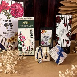 Turn Raksha Bandhan into a giggly, chocolate-filled celebration with our Cute Rakhi n Chocolate Delight Box. Specially made for little mischief-makers, it features two ultra-cute soft toy rakhis�a plush Rabbit Rakhi and a lovable Mickey Soft Toy Rakhi�to spark endless smiles. Alongside, there�s a delightful spread of kid-favorite treats: crunchy Blueberry Cream Wafer Biscuits, Nestl� KitKat Coated Chocolates, classic Munch Bars, a gooey Cadbury 5 Star 3D Bar, Cadbury Fuse for a nutty choco burst, and nostalgic Cadbury Nutties. All neatly packed in a reusable, cheerful gift box�perfect for keepsakes once the treats are gone. Sweet, playful, and full of festive charm, it�s a Rakhi surprise every child will love and remember!