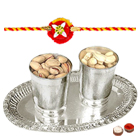 Homemade Chocolate, Mixed Dry Fruits 1kg, Haldiram Badam Barfi 1kg, Shree Thali, Stone Rakhi and a free Rakhi and Roli Tika and Chawal.