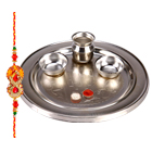 Silver Plated Rakhi Pooja Thali with Ganesh Laxmi Idol