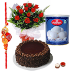 Celebrate the cherished bond of Raksha Bandhan with this delightful combo that brings together love, tradition, and sweet indulgence for the entire family. The Family Rakhi Set includes thoughtfully designed Rakhis for brothers, sisters-in-law, and even younger siblings, making it perfect for a joint celebration. Complementing the festive spirit is a 1 kg tin of Haldiram�s Raj Bhog�soft, juicy, saffron-infused sweets that melt in the mouth and add a royal touch to the occasion. The combo also includes complimentary Roli, Tika, and Chawal for the traditional rituals, along with a personalized Rakhi message card to express your heartfelt emotions in words.