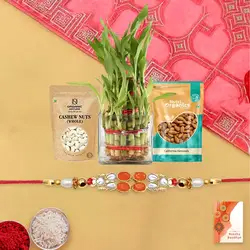 Make this Raksha Bandhan unforgettable with the Rakhi Delight Hamper for Siblings. It brings together sweetness, love, and tradition in one package. The Cadbury Celebration Gift Pack (110g) adds a chocolaty charm to the day, while the Designer Rakhi Set of 4 ensures every brother receives a token of your love. Completing the experience are the complimentary Roli Tika and Chawal for the ceremonial touch and a heartfelt message card to share your feelings. This combo is an ideal gifting option that captures the spirit of togetherness and joy perfectly.