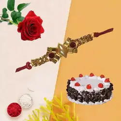 This is a gift of: � Set of 3 Kundan Rakhi by Rakhi Sutra (SET3-09) � Cadbury Dairy Milk Roast Almond (36g) � Cadbury Dairy Milk Crackle (36g) � Cadbury Dairy Milk Fruit n Nut (36g) � Complimentary Roli Tika N Chawal � Complimentary Message Card with Free Rakhi