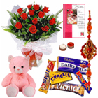 This gift includes: � A Kundan Rakhi by Rakhi Sutra (SAJ2914) � 4 pc Cadbury Dairy Milk Chocolate Bar (13.2g) � Complimentary Roli Tika N Chawal � Complimentary Message Card with Free Rakhi