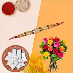 Make your brother feel cherished with this beautifully put-together Rakhi gift set. It includes a 1 Kg tin of Haldiram�s Rasgulla, a beloved sweet that adds instant joy to any celebration. Along with it comes a Designer Rakhi, adding a touch of festive elegance to your sacred bond. To help you uphold the age-old traditions of Raksha Bandhan, this set also provides Roli Tika and Chawal�essentials for the auspicious ritual. Whether youre celebrating together or from afar, this hamper is a heartfelt way to share your love