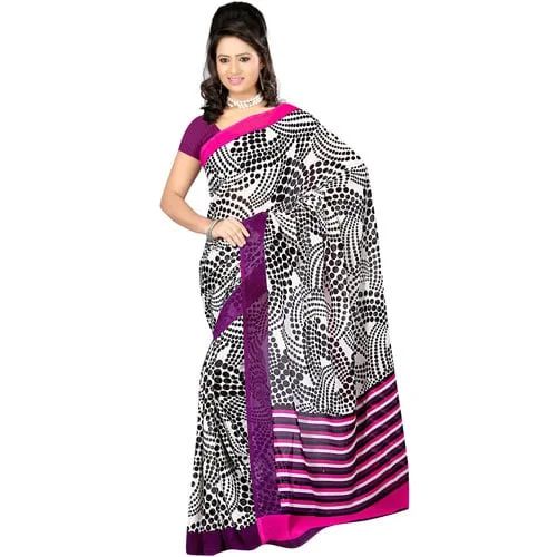 Make others feel special as you treat them with this Classic Dani Georgette Saree with the Touch of Black and White Colour in a very very special way. This Dani Georgette Saree is designed with Polka print.
