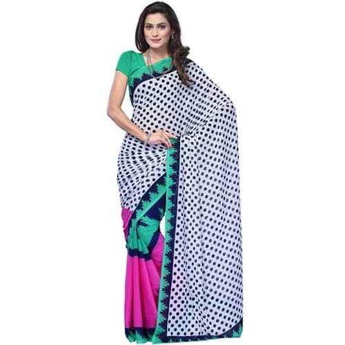 Send this Streaked Sublimity Chiffon Saree to the woman you admire and revere her spruce splendour encompassed in this Sari. This Raiment flaunts a Hued-with-Crimson Body Background with the Texture of Bobby Print, a Congruent �Pallu� and a Clear Green Border with Motifs.