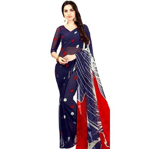 Create wonders in the life of the people you love by sending this Mind-Blowing Ladies Special Navy Blue Color Printed Chiffon Saree and make them your fan.