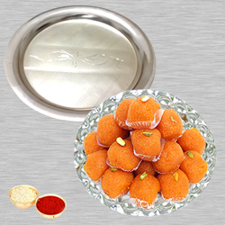 Motichur Ladoo from Haldiram 1 Kg (Gross Weight) with Roli Tilak and Chawal.