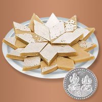 Haldirams Pure Ghee Laddoo with a Silver Plated Ganesh Laxmi Coin) in a Box. This special Diwali Gift will make your loved ones feel happy . (Ghee Laddoo 250 gms Gross Wt.)
