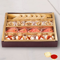 Deck the lives of the people closest to your heart with love by sending this Amazing Gift of Dunkel Braun Pyramid Baklawa (90g), Mini Samosa (200g) n Haldiram Kaju Pista Flower (250g) that beautifully conveys the message of your heart to them.