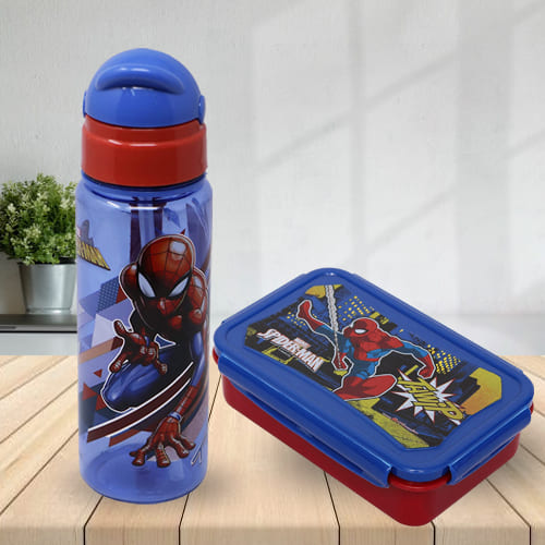Amaze your children by gifting them this Exclusive Marvel Spiderman Tiffin N Sipper Bottle Set and make them crave for more. Details: 1. Items: Marvel Spiderman Tiffin Box N Sipper Bottle Set 2. Color: Multicolor 3. Material: Plastic 4. Capacity: 400 ml (Sipper Bottle) 5. Items of Tiffin Box: 4 side airtight locks with a small chutney container and fork or spoon 6. Other Features: Bpa free, heat resistant, break resistant and food grade, sliding cap makes the bottle spill proof and protects the straw from getting damaged (Sipper Bottle), Bpa free and food grade (Tiffin Box)
