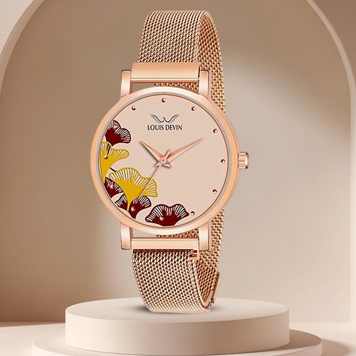 This is a gift of: � LOUIS DEVIN Rose Gold Plated Mesh Chain Analog Wrist Watch for Women (Black/Blue/Rose Gold Dial)