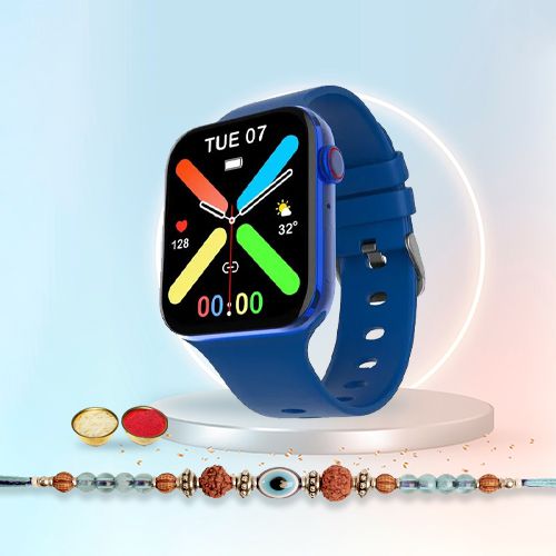 Make this Raksha Bandhan unforgettable with our exclusive Evil Eye Rakhi and Fire-Boltt Visionary Smartwatch Gift Hamper! The beautiful Evil Eye Rudraksh Rakhi serves as a poignant reminder of protection while the modern BT Smart Watch in blue adds a touch of innovation. It�s designed for those who appreciate both tradition and technology. This thoughtful package includes complimentary Roli Tika N Chawal for the ritualistic touches made lovingly, alongside a message card to convey your heartfelt emotions. Celebrate the spirit of togetherness and create lasting memories with this ideal gift that combines sentiment and style!