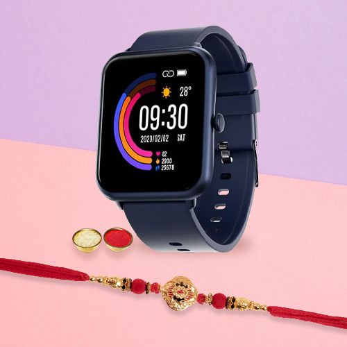 This Gift Hamper contains: � A Fancy Rakhi by Rakhi Sutra (DFRK1420PB) � Fire-Boltt Ninja Call Pro Smart Watch (Blue) � Complimentary Roli Tika N Chawal � Complimentary Message Card with Free Rakhi