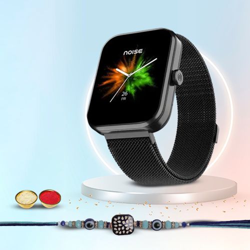 This Gift Hamper contains: � An Evil Eye Rakhi by Rakhi Sutra (EVD0475) � Noise Pulse 2 Max Smart Watch (Elite Black) � Complimentary Roli Tika N Chawal � Complimentary Message Card with Free Rakhi