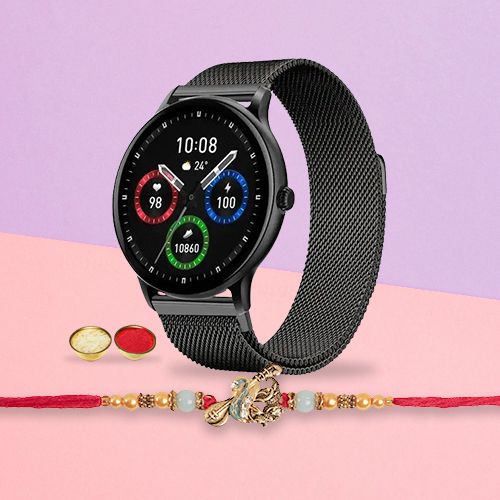 This Gift Hamper contains: � A Fancy Rakhi by Rakhi Sutra (DFRK7610) � Fire-Boltt Phoenix Ultra Smartwatch (Dark Grey) � Complimentary Roli Tika N Chawal � Complimentary Message Card with Free Rakhi