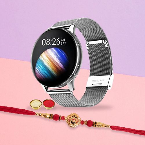 This Gift Hamper contains: � A Fancy Rakhi by Rakhi Sutra (DFRK1420PB) � Noise Vortex Plus Smartwatch (Silver Link) � Complimentary Roli Tika N Chawal � Complimentary Message Card with Free Rakhi
