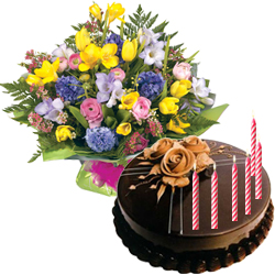 Wonderful Seasonal Flowers Bouquet with Chocolate Cake