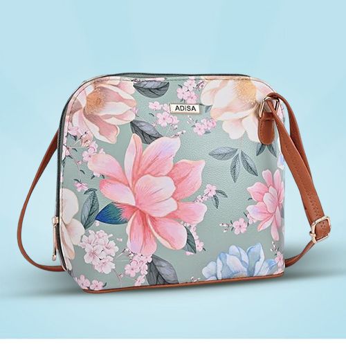 Introducing our Beautiful Floral Print Crossbody Sling Bag, a delightful blend of style and practicality. Adorned with a vibrant floral print, this bag adds a touch of femininity to any outfit. Crafted from durable polyurethane with a soft polyester lining, it offers both durability and comfort. The convenient zipper closure ensures your belongings are secure while youre on the move. Perfect for everyday use, this sling bag features an adjustable strap for personalized comfort. The elegant green colour complements a variety of outfits, making it a versatile choice for any occasion. Whether youre heading to work, running errands, or meeting friends, our Floral Print Sling Bag is the perfect accessory to carry your essentials in style and showcase your unique personality.