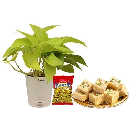 Make others feel special as you treat them with this Captivating Money Plant with Sweet N Savory Delight in a very very special way.