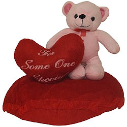 Love will resonate in both the souls of you and your partner when this Delightful Eric on Heart Teddy of Reverence will find a place in the twosome of yours. Coming in a dimension of 30 cm, this Eric on Heart Teddy Bear is featured as settled over a cute Red Pillow and embellished with a For Some One Special Red Love Heart.