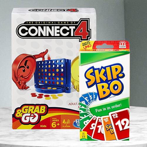 Deliver this amazing gift of Exclusive Hasbro Connect 4 Grab and Go N Mattel Skip Bo Card Game to deliver happiness into the lives of your child whom you love. The details are as follows: