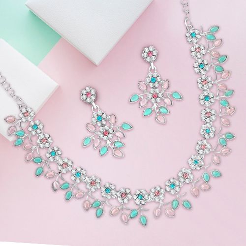 Presenting the epitome of elegance: a Silver Plated Crystal AD Necklace paired with exquisite Matching Earrings, the ultimate gift of sophistication. Dazzle and captivate with the shimmering allure of intricately placed crystals adorning the necklace, delicately crafted to adorn any neckline with grace. Complemented by the perfectly matched earrings, each piece whispers of timeless glamour and refined taste. Whether for a cherished friend, beloved family member, or a deserving self-indulgence, this set promises to elevate every occasion with its radiant charm. Give the gift of everlasting elegance, a symbol of enduring beauty and impeccable style.
