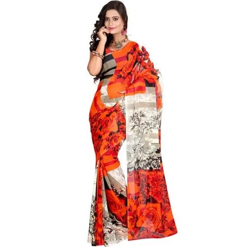 When your dear dame gets dressed in your this gift of Lucent Beaut Faux Georgette Saree lauds for her luminousness are yielded from all over. This Cloak displays a Hued-with-Black-and-Orange Tessellated Body Background and a Chromatic 'Pallu' of Florid Print.