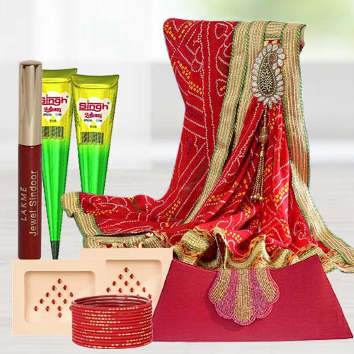 Create special moments with this Marvelous Goodies Gift Bag for Karwa Chauth Sringar when you are together with your loved ones. This Hamper comes with-