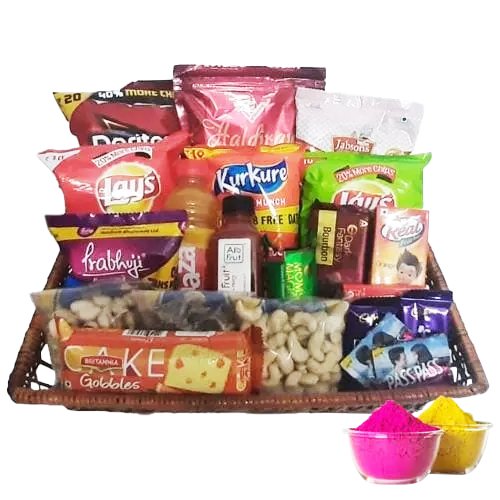 Engage in the true spirit of celebration with this Tasty Assortments Gift Hamper for Holi that instantly uplifts the mood. This hamper consists of: